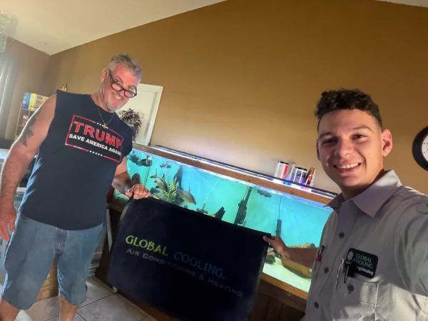 Update: Oscar and Cesar replaced our entire unit and they were marvelous. So kind and professional and hardworking. They even swept after everything. 10/10! Global cooling is the best. They have never let us down.